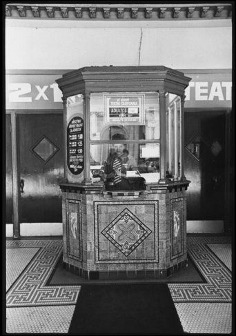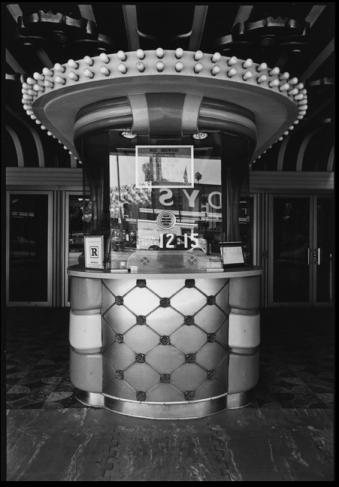 “Bijou” is a boxed set of twelve black and white prints that depict selected box offices in front of Los Angeles movie theaters. I produced twenty-five numbered sets and two artists proof sets in 1975. Color photos of box offices may be viewed in “Movie Palaces”. These photographs are also featured in a book from Nazraeli Press